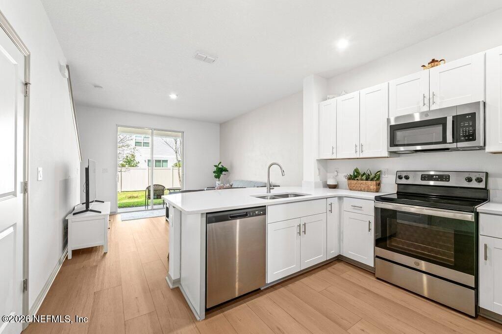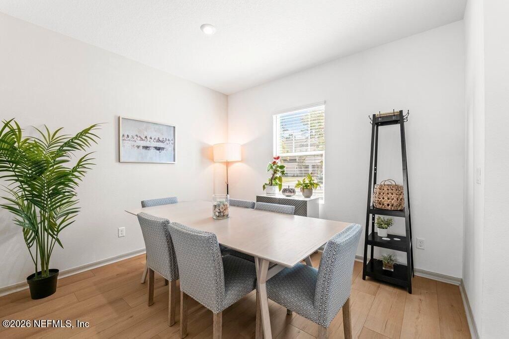 UPDATED TOWNHOME -Luxury Vinyl Plank on 1st floor, NEW Vanity in Powder Room! NEW Bathroom sink and tub faucets. The Corfu model is the largest of the 2-bed units, which includes an extra front room that can be used as a Dining Room or Office. This almost-new, bright and beautifully maintained 2-story townhome with low association fees! Featuring 2 spacious bedrooms, each with its own en-suite bath and walk-in closet. Enjoy upscale finishes throughout, including tall ceilings downstairs, quartz countertops with a large breakfast bar, extra trim details with softly accented walls, a huge walk-in kitchen pantry, and a covered patio in the back. With tons of natural light, an open-concept layout, and a clean, gently lived-in feel this home is move-in ready and waiting for its next owner. HOA covers exterior maintenance, pool, dog park, playground. The up and coming location is convenient to the Airport, extensive parks and preserves, I-295, I-95, and the River City Marketplace. Come view this pristine townhome today!