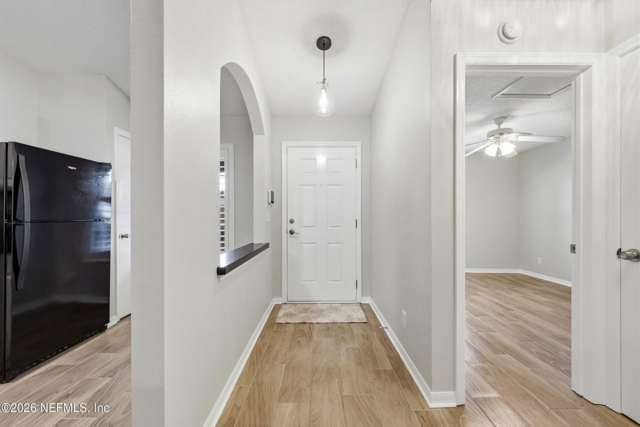 Don't miss this beautifully renovated townhome tucked away in a gated community zoned for top-rated St. Johns County schools & offering full access to the incredible amenities of Julington Creek Plantation. Inside, you'll find stylish upgrades throughout including hand-scraped wood-look tile flooring, plantation shutters on all windows & patio doors, fresh interior paint, & new lighting. The stunning bathroom remodels feature fully tiled showers, luxury vanities, custom fixtures, undermount sinks for a clean, modern finish. Ceiling fans in every bedroom & the family room add comfort, while wood shelving maximizes storage in both closets. The kitchen shines with granite countertops & new refrigerator, oven & disposal. Step outside to enjoy a private yard space, covered front porch, & newly screened rear patio. Residents enjoy resort-style amenities: lap pool, slide, lazy river, fitness center, group fitness, dog park, playgrounds, nature trails, food/beverage service & more!