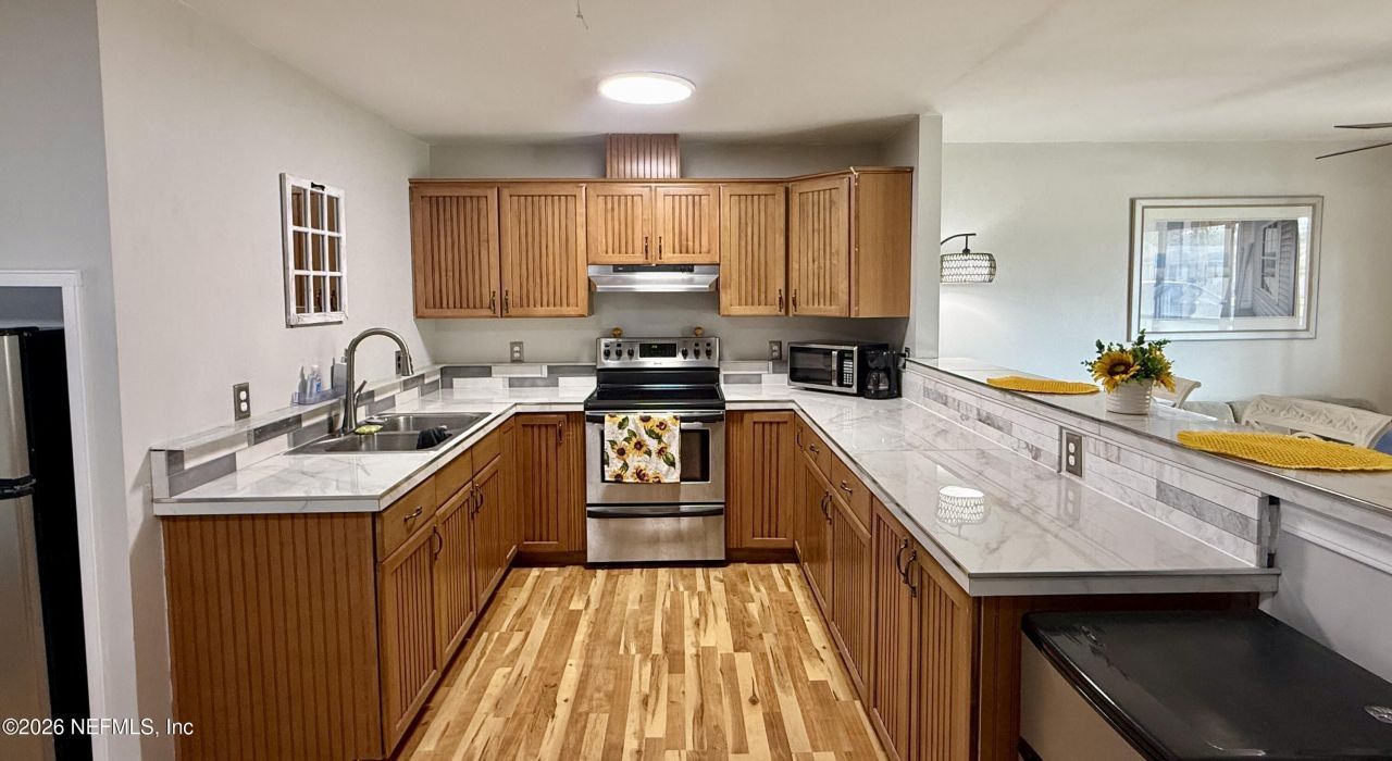 Charming 2-bedroom, 1-bath home located in the heart of Mandarin. This inviting property features a beautifully remodeled eat-in kitchen complete with a large breakfast bar, perfect for casual dining and entertaining. Enjoy relaxing evenings on the spacious 21 x 15 ft screened porch overlooking the large fenced backyard -- ideal for pets, and enjoy your outdoor living with a fire pit and a huge extra pavered area for gatherings. Easy maintenance with wood laminate floors and vinyl siding exterior. Conveniently located near shopping, dining, and major roadways while maintaining a quiet neighborhood feel.