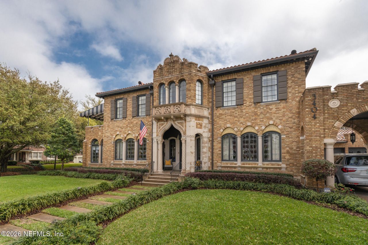 On one of Avondale's most admired streets, this extraordinary St Johns Avenue estate stands as a true expression of luxury living in a historic setting. Featured in Jacksonville's Architectural Heritage, this remarkable residence is recognized as a prominent landmark and a celebrated example of Mediterranean Revival design. Designed by architect Jefferson D. Powell shortly after his return from Venice, the home draws direct inspiration from the palaces lining Italy's Grand Canal and was originally built for Max Knauer, a prominent Jacksonville hardware dealer. Just moments from the Shoppes of Avondale, it commands attention with architectural distinction, presence, and a sense of arrival that feels both grand and deeply rooted in place.The Venetian influence is unmistakable. The projecting two story entrance pavilion features a dramatic ogee arch and a star wheel motif inspired by the Palazzo Contarini Fasan. Arched windows of varying forms, columns, stylized leaded glass, brick and cast stone ornamentation, and crenelated parapets define the exterior. Even the chimneys are adorned with arched openings, all beneath a mission tile roof that completes the authentic Mediterranean profile. This is architecture with intention, artistry, and lasting significance.The main residence offers four bedrooms, a dedicated office, two full baths upstairs, and a gracious powder room on the main level. A finished basement provides additional living space with an additional bedroom and a full bathroom, ideal for guests or extended stays. Connected by a covered walkway, the private casita apartment includes its own full bath and thoughtful upgrades, creating a refined retreat that feels both separate and seamlessly integrated.Inside, every space reflects the careful stewardship of the current owners. The kitchen anchors the home with Sub Zero refrigeration, Wolf double ovens and a six burner gas range, Fisher and Paykel dishwasher, a built in pantry, and elevated finishes that balance performance with quiet elegance. Lighting has been curated throughout, systems thoughtfully enhanced, and modern functionality introduced with respect for the home's architectural integrity.Outdoors, the property unfolds into a private resort setting. The grounds have been completely reimagined with professional landscaping, extensive landscape lighting, upgraded drainage, and a reengineered irrigation system that keeps the property pristine year round. A striking pool and spa serve as the centerpiece, complemented by a custom summer kitchen, paver entertaining areas, and a natural gas fire pit. Integrated audio, app controlled pool features, and seamless indoor outdoor flow create an environment designed for both grand entertaining and everyday enjoyment.Behind the scenes, the home is equally impressive. Newer air conditioning systems, upgraded electrical, a dedicated communications closet, enhanced security, a water softener, and meticulously maintained roof and mechanicals reflect a level of care rarely seen. Improvements were completed by respected local professionals, reinforcing confidence in both the beauty and performance of the home.Celebrated in Jacksonville Magazine and featured on the RAP Home Tour, this is not simply a luxury home in Avondale. It is a landmark residence of architectural importance, thoughtfully elevated for modern living while honoring the character and craftsmanship that make it truly irreplaceable. A genuine jewel on St Johns Avenue, ready for