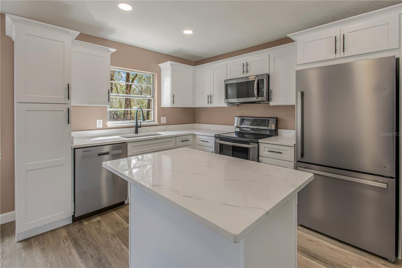 ABSOLUTELY TURNKEY - NEW ROOF, NEW HVAC, AND TOP-TIER FINISHES! Why wait for new construction when you can move into a meticulously remodeled masterpiece today? No detail has been spared in this complete transformation, headlined by a brand-new roof and new HVAC system for total peace of mind. Step onto gorgeous new luxury vinyl plank flooring that spans the entire home, complemented by new interior doors, updated baseboards, and a fresh, modern paint palette inside and out. The heart of the home is a stunning chef's kitchen featuring solid wood shaker cabinetry, high-end Calacatta Fantasy quartz countertops, and new stainless steel appliances, including a refrigerator and dishwasher. Both bathrooms have been elegantly redesigned with custom-tiled showers featuring premium Moen valves and hardware, accented by all-new designer light fixtures. Enjoy the freedom of NO HOA and the privacy of a fully fenced backyard, perfect for pets, gardening, or entertaining. From the quartz surfaces to the structural upgrades, this home offers the luxury of a custom build with the character of an established DeLand neighborhood. Septic system has been pumped and tested and is good to go! Report available at no cost.