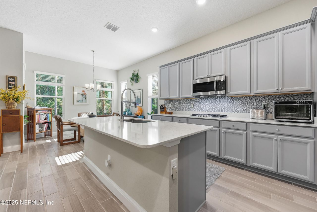 Premium preserve homesite in Nocatee's exclusive gated 55+ Artisan Lakes community -- this meticulously upgraded, move-in ready home delivers unmatched privacy, space, and resort-style living on one of the most coveted lots in the neighborhood. Set on a wide preserve lot with no rear neighbors and serene natural views in every direction, this 2,173 square foot single-story residence offers every upgrade already done -- giving you the benefits of new construction without the wait, the builder markups, or the months of decision fatigue.The extended screened lanai is the heart of this home -- a true private retreat overlooking the protected preserve where mornings start with coffee and birdsong, not rooftops. The open floor plan brings the outdoors in with soaring ceilings, abundant natural light, and a seamless flow from the living area to the lanai that creates an indoor-outdoor living experience rarely found in a maintenance-free community. Every detail inside has been thoughtfully improved for real daily living. The gourmet kitchen features quartz countertops, stainless steel appliances, a gas cooktop, custom cabinetry, and a generous entertaining island -- with custom pull-out shelving throughout for storage and functionality that builder-grade homes simply don't offer. Closets, pantry, and cabinetry have all been maximized so everything has a place. The split bedroom layout ensures total privacy -- the spacious owner's suite with spa-like bath and walk-in closet is tucked away on one side, while two comfortable guest bedrooms and a well-appointed guest bath are privately situated on the other. Two and a half bathrooms means no one is ever waiting, whether it's just the two of you or a house full of visitors.Even the garage has been taken to the next level -- a whisper-quiet garage door, keyless entry, durable epoxy flooring, and upgraded smart home technology make this one of those spaces you didn't know you needed until you experience it. Paired with a tankless water heater, smart thermostat, and quality stone veneer and stucco construction throughout, this home is truly turnkey. Bring your furniture and start living from day one.Artisan Lakes offers resort-style amenities including a clubhouse, fitness center, pool, pickleball and tennis courts, and a vibrant social calendar -- plus full access to Nocatee's Splash & Spray parks, trails, shopping, and dining. Lawn care is included, keeping life simple.Minutes from the beaches of Ponte Vedra, the charm of St. Augustine, and everyday conveniences by golf cart. This is what maintenance-free 55+ living looks like when you refuse to compromise on privacy, quality, and a home that's ready the moment you walk through the door.