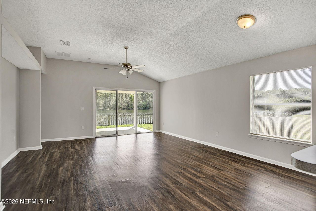 This is a pristine, neutral and bright home with exquisite lakeviews. Newly painted interior and exterior, New plushy carpet in the bedrooms & previous updated with LVP in the main areas. An open floor plan with vaulted ceilings makes for an easy flow of living. The eat-in-kit features a breakfast bar, pantry and updated appliances which opens to a formal dining area and familyroom. The main bedrm is spacious with a bright bath with a lounging tub a stand alone shower plus a walk-in closet. Indoor laundry, 2 car garage, Enjoy your evenings on the covered patio which overlooks a stunning lake (no neighbors looking over your fence). Next its time to enjoy your amenities for some fun! A junior Olympic pool, children's water park, playground, and various sports courts (basketball, volleyball, tennis). If you like to shop the Town Center is a mile away. Here you are close to schools, shopping, major highways, Naval Air Station Jacksonville (NAS Jax), Cecil Commerce Center & downtown Jax.
